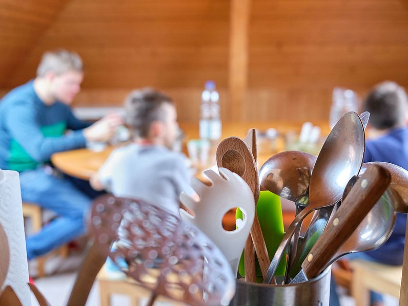 In der woleg legen wir grossen Wert auf drei gemeinsame und ausgewogene Mahlzeiten. Dabei orientieren wir uns an der bedarfsorientierten Ernährung (BoE). Während das Mittagessen in der Hauptküche im Zentrum gekocht wird, bereiten die Kinder mit den Betreuerinnen und Betreuer das Abendessen dann gleich selber zu.